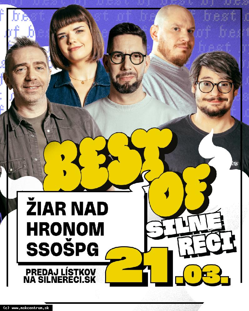 Hitparáda najlepších vtipov a najzábavnejších stand-upov prichádza do vášho mesta! Silné reči Best Of prináša najväčších komikov slovenskej stand-up scény, ktorí vám naservírujú svoje top sety, ktoré vás zaručene dostanú do kolien.