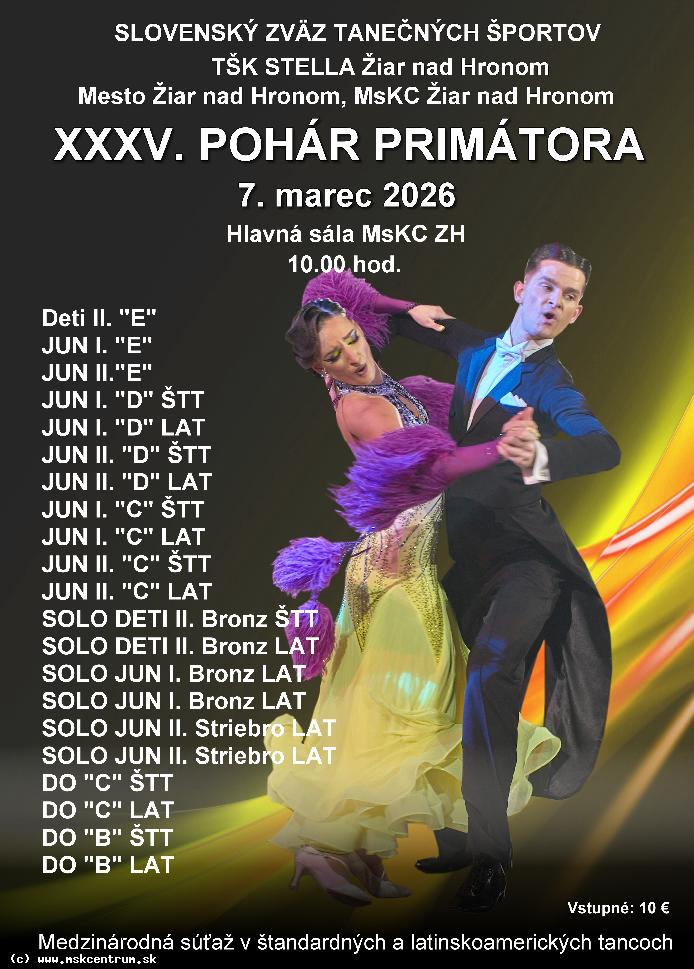 Slovenský zväz tanečných športov, TŠK STELLA Žiar nad Hronom, Mesto Žiar nad Hronom a MsKC Žiar nad Hronom vás srdečne pozývajú na XXXV. POHÁR PRIMÁTORA.